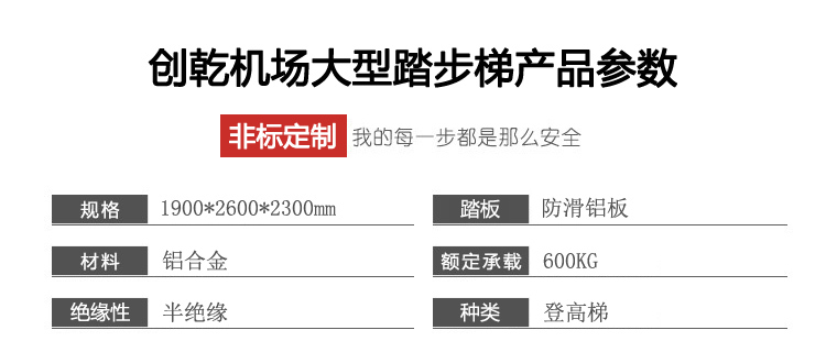 專用于機(jī)場(chǎng)大型鋁合金踏步梯,額定承載:600KG,非標(biāo)定制。